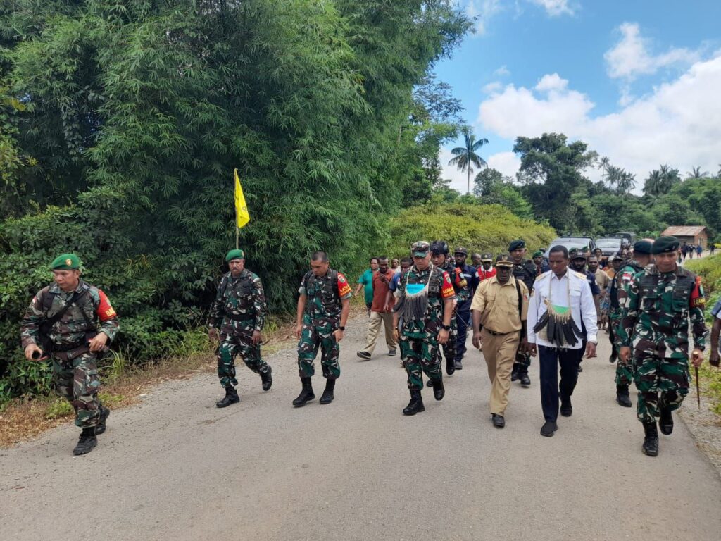 “Pada kesempatan ini saya sampaikan bahwa terkait pembangunan Pos Kalikao akan segera dilaksanakan sesuai dengan lokasi yang telah diberikan oleh pemilik hak ulayat tanah dan sudah menyerahkan surat pelepasan tanah kepada anggota Pos Kalikao sehingga Danramil agar koordinasikan, supaya dapat dicek sesuai dengan lokasi yang sudah ditentukan oleh masyarakat,”terang Danrem.
