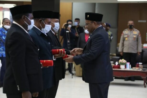 TIFFANEWS.CO.ID - Penjabat (Pj) Gubernur Papua Selatan, Prof. Dr. Ir. Apolo Safanpo, ST., MT, menggunakan…