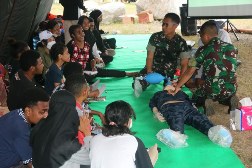 TIFFANEWS.CO.ID,-  Dalam rangka mempersiapkan kader-kader relawan kesehatan muda Papua yang terintegrasi, Yonif RK 751/VJS turut memberikan materi dalam kegiatan volunteer Camp RDK (Respon Darurat Kesehatan) yang diselenggarakan di Kampung Doyo Lama, Sentani, Jayapura. Senin (31/10).