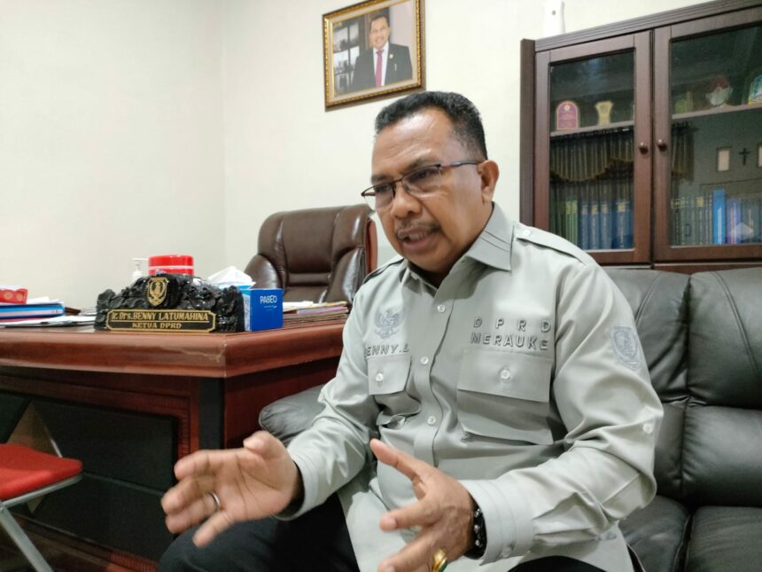 Ketua DPRD Merauke, Benjamin Izaac Latumahina saat memberikan keterangan pers di ruang kerjanya, Senin (14/11)