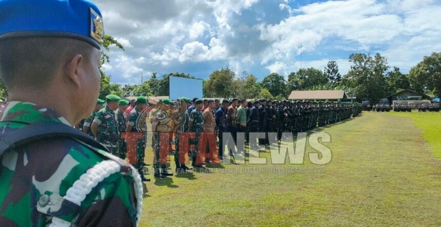 Persiapan kunjungan Wakil Presiden RI ke Merauke, 1.100 personil gabungan TNI-POLRI mengikuti apel pengecekan pasukan di Markas Kodim 1707 Merauke (foto: Tiffanews.co.id)