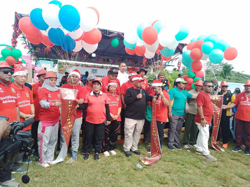 TIFFANEWS.CO.ID,- Dalam rangka menyambut hari raya Natal dan tahun baru, Lintas Agama menggelar jalan santai bersama Aparatur Sipil Negara, TNI/POLRI serta elemen masyarakat se-Kabupaten Sarmi, dengan titik star dari pertigaan Bandara Mararena dan finish di Lapangan Merdeka Distrik Sarmi, Sabtu, (10/12)
