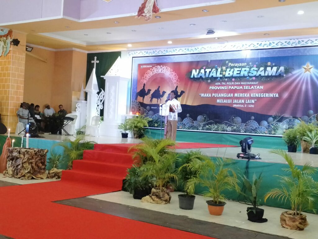 PJ Gubernur Apolo Safanpo mengatakan hal itu, dalam sambutan pada perayaan Natal Bersama Provinsi Papua Selatan, di GOR HIAD SAI Kabupaten Merauke (07/01).