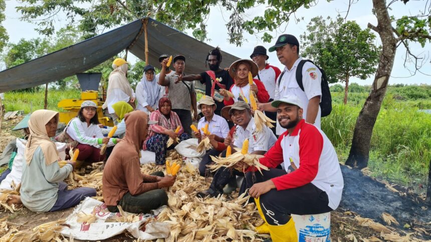 TIFFANEWS.CO.ID,- Papua Muda Inspiratif melakukan panen jagung hibrida bersama petani binaan di Kampung Marga Mulia Distrik Semangga Merauke, Papua Selatan, Rabu (11/01).