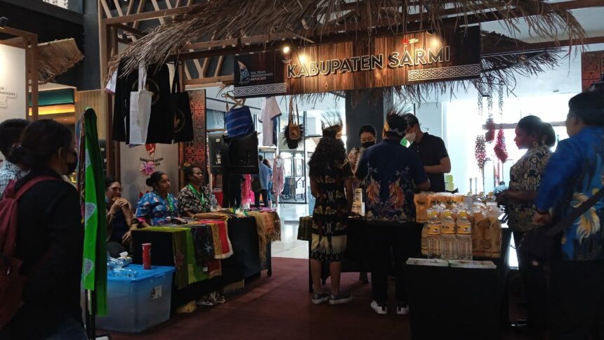 Stand Kabupaten Sarmi pada pameran hasil produk pelaku usaha di kawasan bisnis Sarinah Jakarta Pusat. Pameran hasil UMKM ini berlangsung selama tiga hari, 1-3 Februari 2023. (Foto : tiffanews)