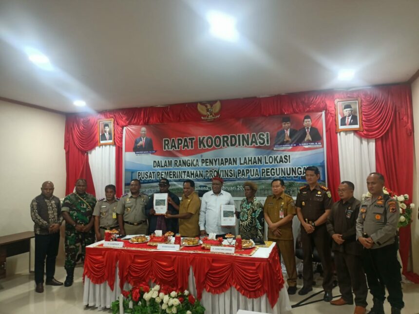 TIFFANEWS.CO.ID,- Dandim 1702/JWY Letkol Cpn Athenius Murip.S.H.M.H menghadiri rapat koordinasi dalam rangka penyiapan lahan lokasi pusat pemerintahan provinsi Papua Pegunungan, di Aula kantor Gubernur Papua Pegunungan, Jl. Diponegoro, Distrik Wamena, Kabupaten Jayawijaya, Provinsi Papua PegununganSenin (06/02).