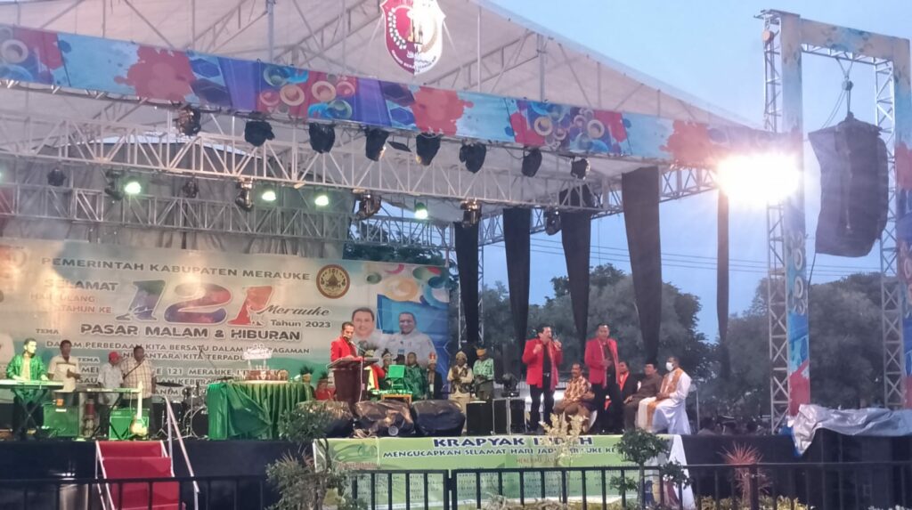 TIFFANEWS.CO.ID,- Ribuan masyarakat Merauke menyambut meriah penampilan artis legendaris papan atas Trio Ambisi pada malam puncak HUT Ke 121 Kota Merauke yang berlangsung di Lapangan Kapsul Waktu, Kota Merauke, Kabupaten Merauke. Minggu (12/2)