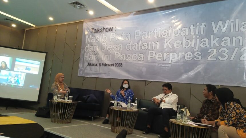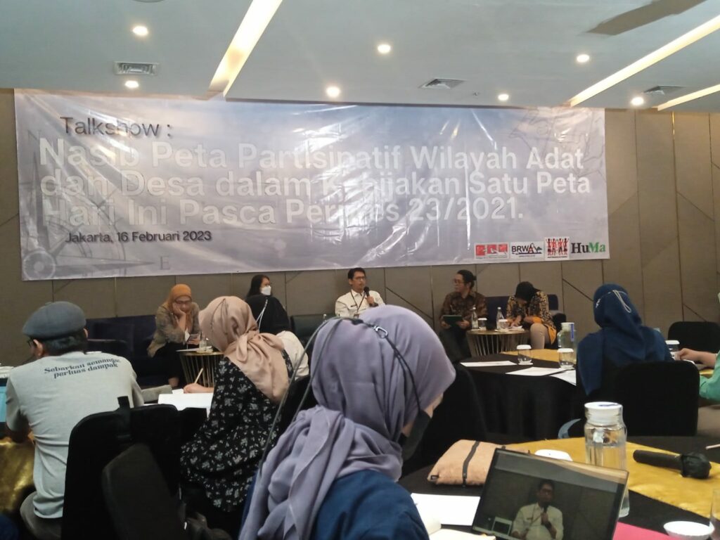 TIFFANEWS.CO.ID,- Sejumlah masyarakat sipil yang terdiri dari JKPP, AMAN, BRWA, HuMa menyelenggarakan Talkshow untuk membahas nasib peta partisipatif wilayah adat dan desa dalam kebijakan satu peta pasca Perpres 23/2021, di Jakarta, Kamis (16/2).