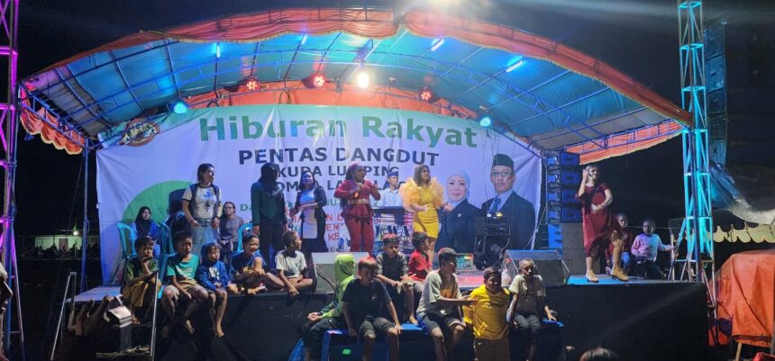 Acara hiburan rakyat semakin meriah dengan hiburan berupa dangdut koplo berasal permintaan masyarakat setempat yang notabene masyarakat eks transmigrasi. (Ron)