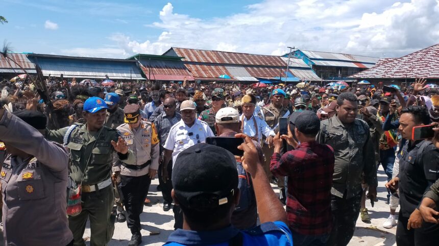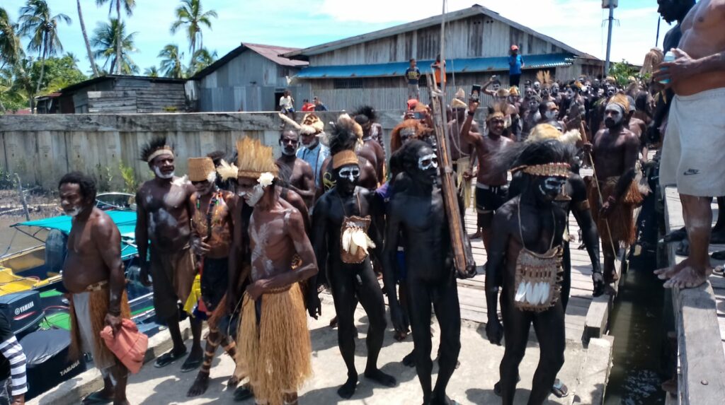 TIFFANEWS.CO.ID,- Tarian adat massal dan sorak-sorai, gegap-gempita penuh riang gembira ribuan warga masyarakat adat Asmat mengawali kunjungan kerja (Kunker) perdana sekaligus penyambutan secara adat Pj.Gubernur Provinsi Papua Selatan (PPS) Dr. Ir.Apolo Safanpo,ST.,MTdan Ketua Tim Penggerak PKK PPS, Ny.Ade Irma Suryani Safanpo,ST.,MT di Kabupaten Asmat.