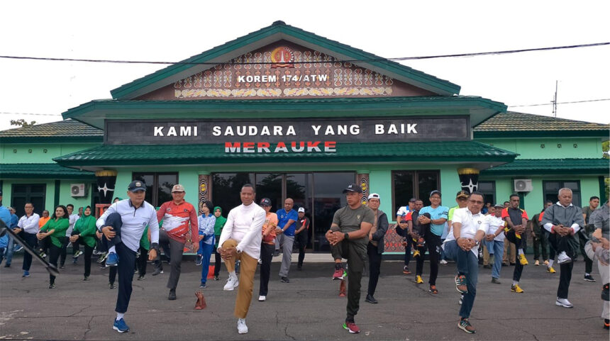 TIFFANEWS.CO.ID, – Forkopimda Provinsi Papua Selatan (PPS) bersama Forkopimda Kabupaten Merauke melaksanakan kegiatan olahraga bersama, di Markas Komando Resort Militer 174 Anim Ti Waninggap (ATW), Kabupaten Merauke, Provinsi Papua Selatan. Selasa (4/4).