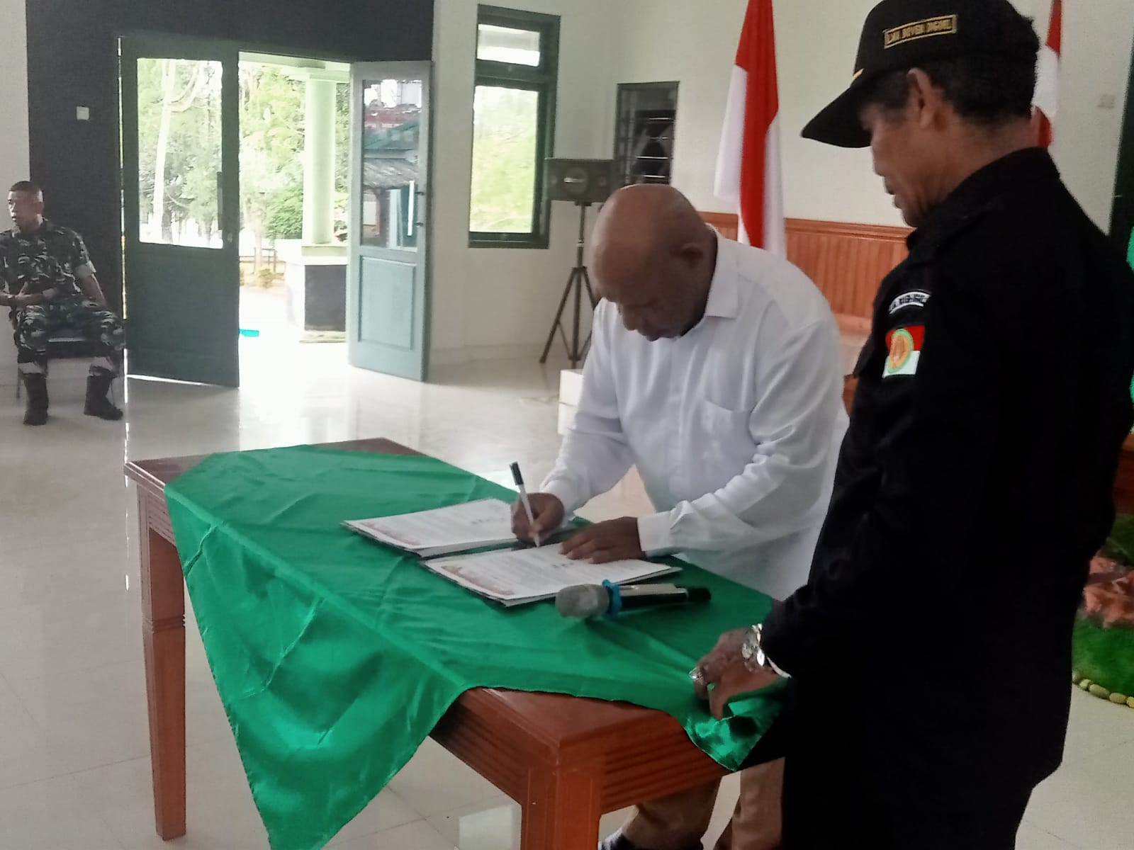 TIFFANEWS.CO.ID, – Paskalis Netep, SH, Sekjen Lembaga Masyarakat Adat (LMA) Provinsi Papua melantik 26 Pengurus LMA Kabupaten Boven Digoel di Gedung Hatta Makodim 1711/BVD, Jalan Trans Papua Km. 06, Kampung Mawan, Distrik Mandobo, Kabupaten Boven Digoel, Sabtu (6/5).