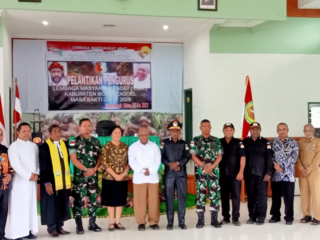 Pelantikan LMA Kabupaten Boven Digoel berlansung dengan dihadiri oleh perwakilan Pemerintah Daerah Kabupaten Boven Digoel, TNI, Tokoh Agama, Tokoh Masyarakat dan Perwakilan Suku yang ada di Wilayah Kabupaten Boven Digoel.