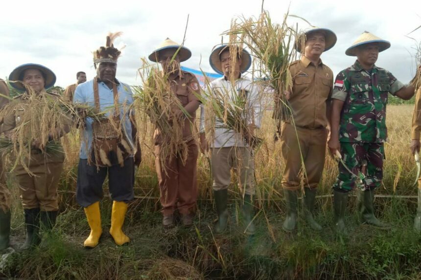 TIFFANEWS.CO.ID,- Pj. Gubernur Papua Selatan Dr. Ir. Apolo Safanpo melakukan panen raya di persawahan RT.04/RW.01 Kelurahan Kamahedoga Distrik Merauke Kabupaten Merauke – Papua Selatan. Senin (8/5).