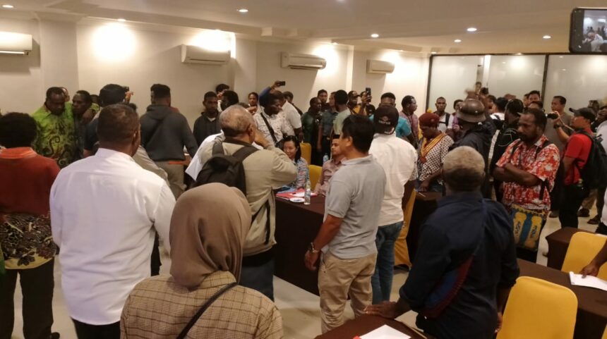 TIFFANEWS.CO.ID,- Pelaksanaan Pleno Penetapan Anggota Majelis Rakyat Papua Provinsi Papua Selatan (MRP-PPS) oleh Panitia Pemilihan (Panpil) MRP-PPS sempat terjadi aksi protes dan sanggahan dari masyarakat yang hadir.