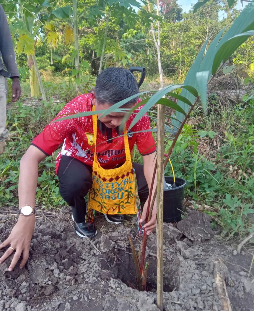 TIFFANEWS.CO.ID,– Usai mengikuti acara pembukaan Festival Tokok Sagu di Kampung Skow Yambe, Distrik Muara Tami, Kota Jayapura, Papua, Penjabat (Pj) Wali Kota Ambon, Bodewin Wattimena didampingi istrinya turut serta menanam sagu bersama, di Kampung Skow Yambe, Selasa,(21/6).