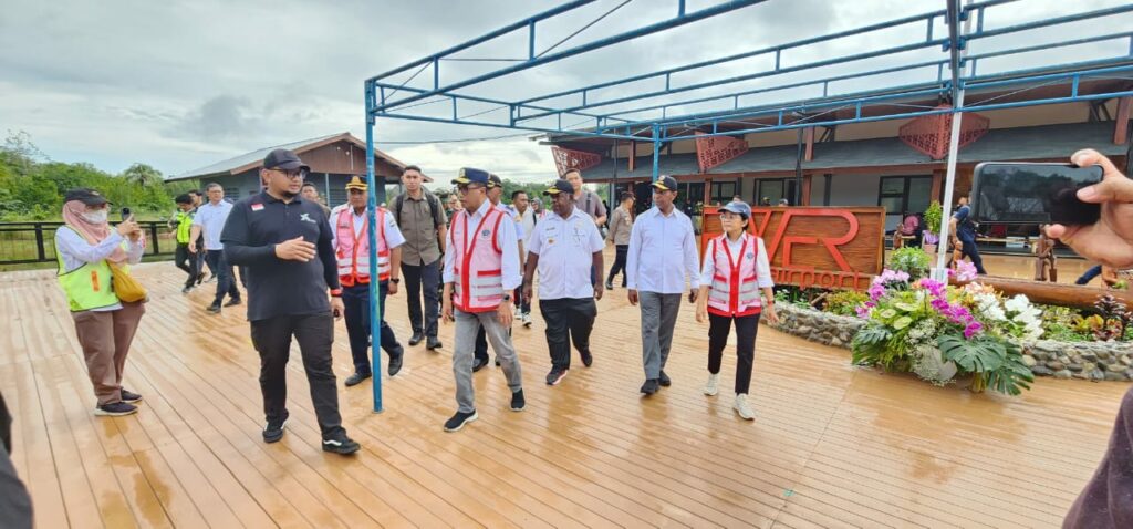 TIFFANEWS.CO.ID,-Menteri Perhubungan RI, Dr. Ir. Budi Karya Sumadi, tiba di Kabupaten Asmat, Provinsi Papua Selatan, Rabu (5/7) untuk melihat persiapan kegiatan peresmian Bandar Udara Ewer yang akan diresmikan Presiden Joko Widodo, Kamis (6/7)