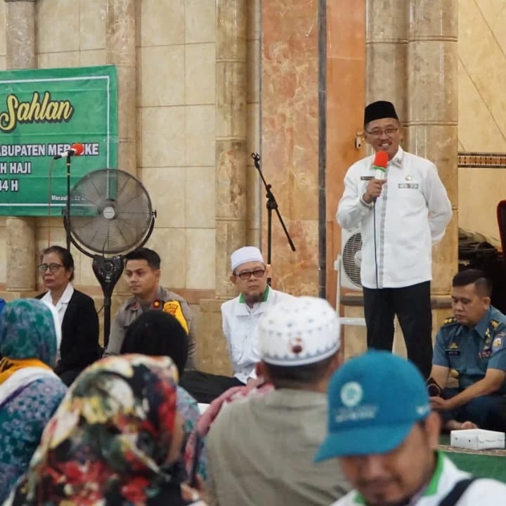 Kehadiran Wakil Bupati Merauke, H. Ridwan, S.Sos, memberikan semangat dan motivasi kepada jemaah haji serta mengapresiasi perjuangan mereka dalam menunaikan rukun Islam yang kelima.