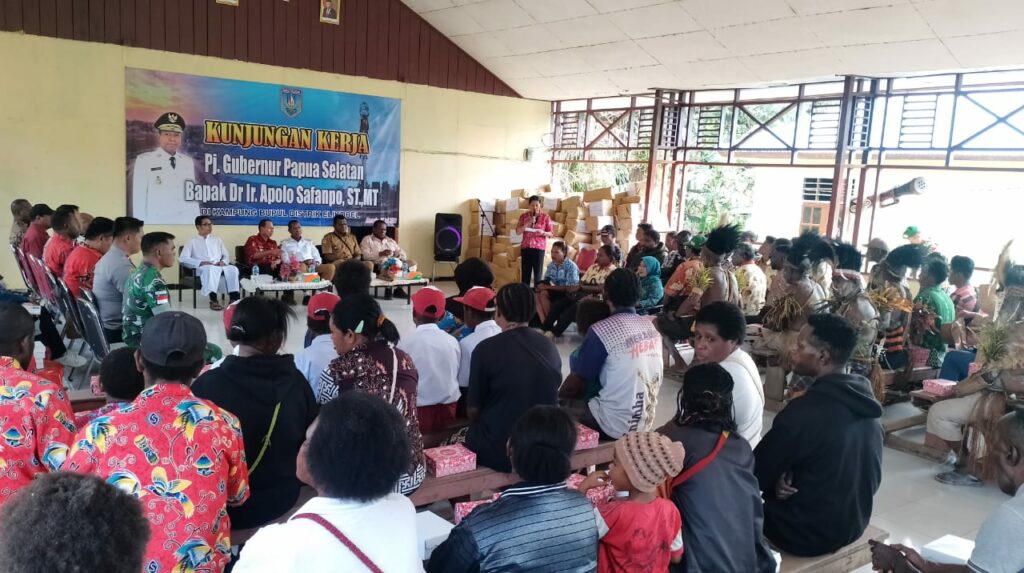 TIFFANEWS.CO.ID,- Pj. Gubernur Provinsi Papua Selatan (PPS), Dr. Ir. Apolo Safanpo, ST., MT., melakukan kunjungan kerja dan sapa masyarakat adat di Kampung Bupul, Distrik Elikobel, Kabupaten Merauke, Kamis (27/7).
