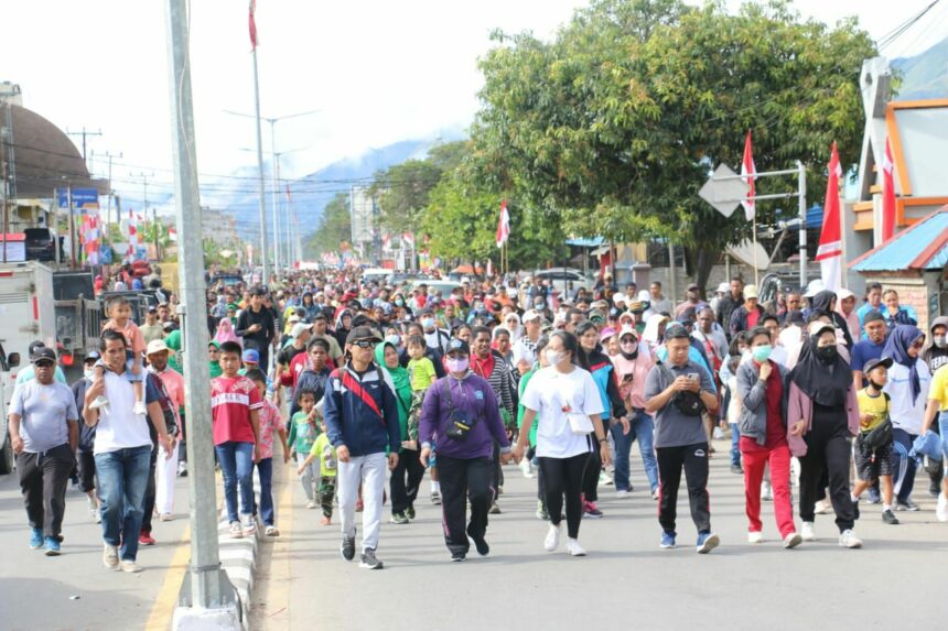 Jalan santai  diikuti ratusan masyarakat dan secara langsung dilepas oleh Bupati Kabupaten Jayawijaya Jhon Richard Banua, S.E., M.Si.