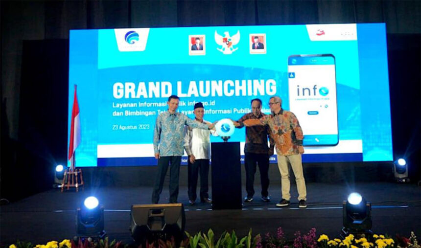 Grand Launching Aplikasi Layanan Informasi Publik info.go.id oleh Menteri Komunikasi dan Informatika Republik Indonesia, Budi Arie Setiawan, bersama Direktur Jenderal Informasi dan Komunikasi Publik, Kemkominfo, Usman Kansong, Komisioner Komisi Informasi Pusat, Syawaludin, dan Direktur Tata Kelola dan Kemitraan Komunikasi Publik, Kemkominfo, Hasyim Gautama (23/8)
