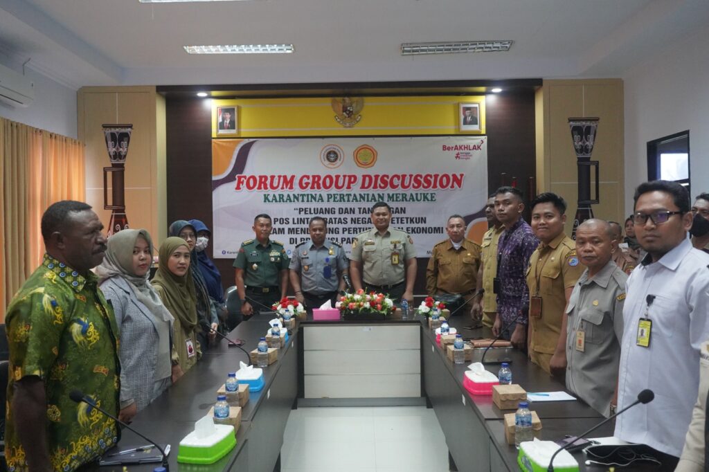 TIFFANEWS.CO.ID,- Guna meningkatkan sinergitas antar pemangku kepentingan yang mempunyai peran di perbatasan negara, Karantina Pertanian Merauke menyelenggarakan Focus Grup Discussion (FGD) dengan tema “Peluang dan Tantangan PLBN Yetetkun Dalam Mendukung Pertumbuhan Ekonomi di Papua Selatan” secara daring dan luring pada Senin (28/8) di Aula Kantor Induk.