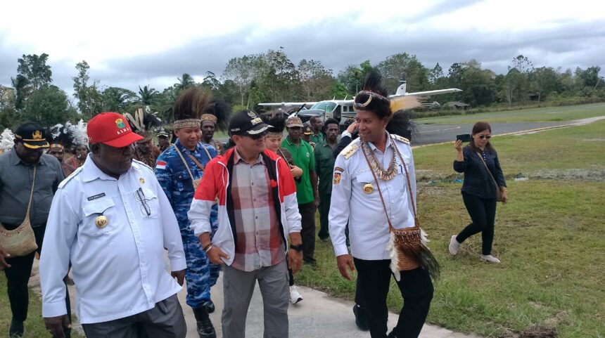 TIFFANEWS.CO.ID,- Pj Gubernur Papua Selatan Dr. Ir. Apolo Safanpo, ST., MT., melakukan kunjungan kerja (Kunker) ke Distrik Soator Kabupaten Asmat, Jumat (15/9). Sebelum menuju Distrik Seator, Pj Gubernur menyambangi masyarakat Kampung Senggo, Kabupaten Mappi.
