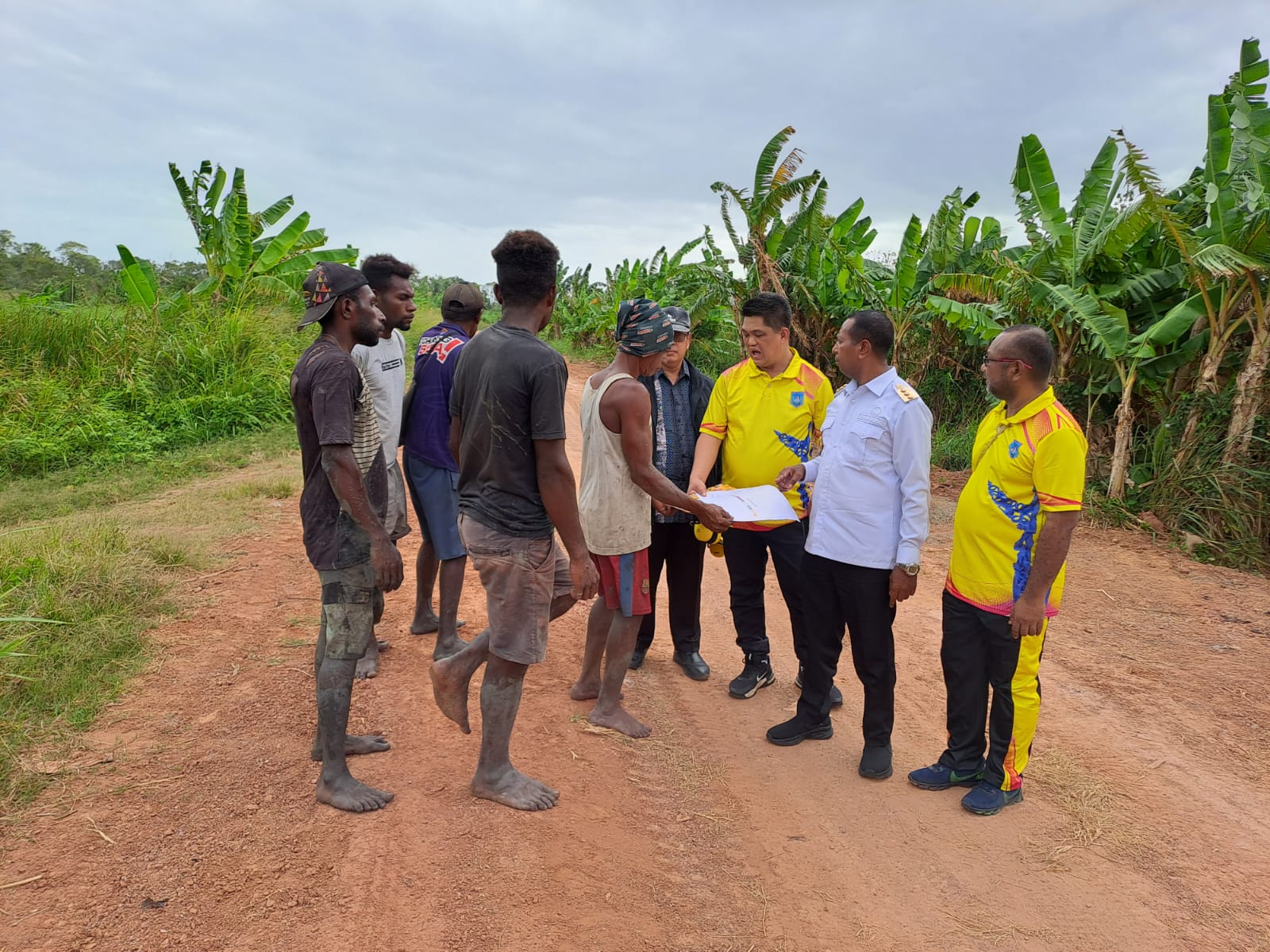 Di kampung sanggasei, Gubernur Apolo diterima masyarakat setempat yang dipimpin oleh Mantan Kepala Kampung Sanggasei, Yohanis Yawimase.