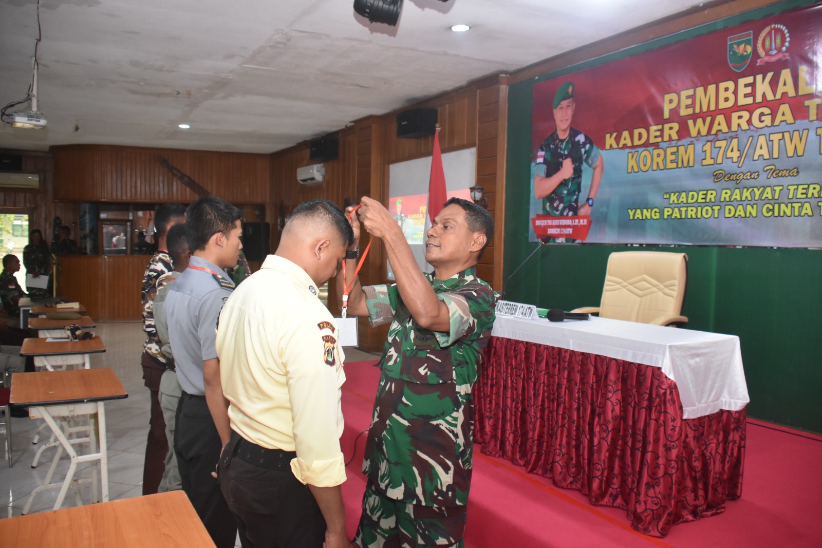 Sejalan dengan tujuan pembekalan kader warga terlatih Korem 174/ATW 2023 untuk membina generasi muda yang berkepribadian, berkarakter, berakhlak mulia, disiplin, terampil dan memiliki semangat dan kesadaran bela negara.