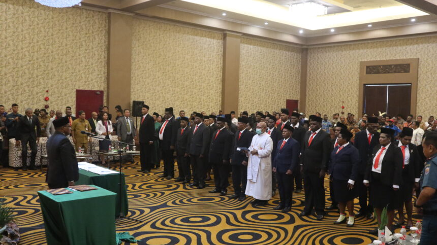 TIFFANEWS.CO.ID,-Majelis Rakyat Papua Provinsi Papua Selatan (MRP – PPS) resmi dan sah sebagai anggota definitif MRP-PPS setelah dilantik oleh Jhon Wempi Wetipo, Wakil Menteri Dalam Negeri (Wamendagri) di Auditorium Swissbell Hotel, Merauke, Papua Selatan, Senin (6/11).