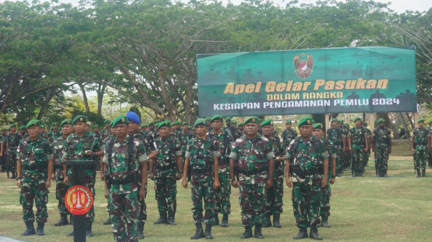 TIFFANEWS.CO.ID,- Kasrem 174/ATW, Kolonel oleh Inf Frits Wilem Rizard Pelamonia bersama 700 lebih personel mengikuti apel gelar pasukan dalam rangka kesiapan Pengamanan Pemilu 2024 di lapangan Makorem 174/ATW, Kabupaten Merauke, Provinsi Papua Selatan, Rabu (8/11/2023).