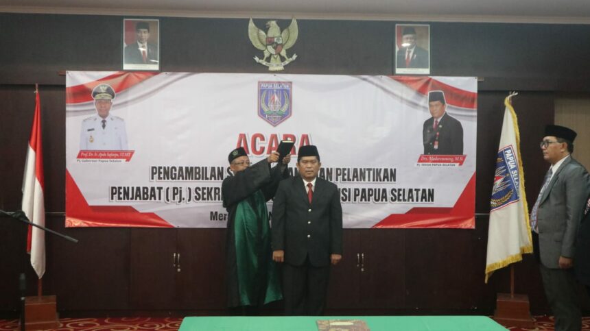 TIFFANEWS.CO.ID,- Penjabat (Pj) Gubernur Papua Selatan, Prof. Dr. Ir. Apolo Safanpo, ST., MT., melantik Drs. Maddaremmeng, M.Si sebagai Penjabat (Pj) Sekretaris Daerah (Sekda) Provinsi Papua Selatan di Merauke, Ibukota Papua Selatan, Selasa (28/11).