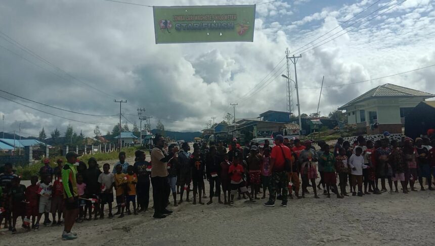 Lomba lari 5 km berlangsung di depan Kantor Makodim 1703/Deiyai Jl.Tigi Doww Distrik Tigi Barat Kabupaten Deiyai prov.Papua Tengah Jumat (1/12/2023).