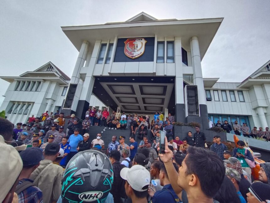 Aksi unjuk rasa masyarakat itu berlangsung di depan Kantor Bupati Merauke, Kamis (12/01/2024).