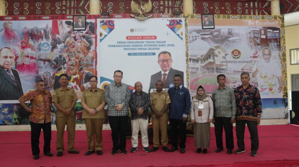 TIFFANEWS.CO.ID,- Universitas Musamus (Unmus) menggelar kuliah umum bertajuk “Peran Perguruan Tinggi Dalam Pembangunan Daerah Otonomi Baru Provinsi Papua Selatan” di Gedung PKM Unmus, Merauke pada Senin (29/1/2024).