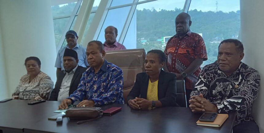Pokja Agama Majelis Rakyat Papua (MRP) Provinsi Papua yang disampaikan melalui keterangan pers di Kantor MRP, Jayapura,(02/2,2024), dipimpin Ketua MRP sementara, Frist Mambrasar bersama unsur agama lainnya.