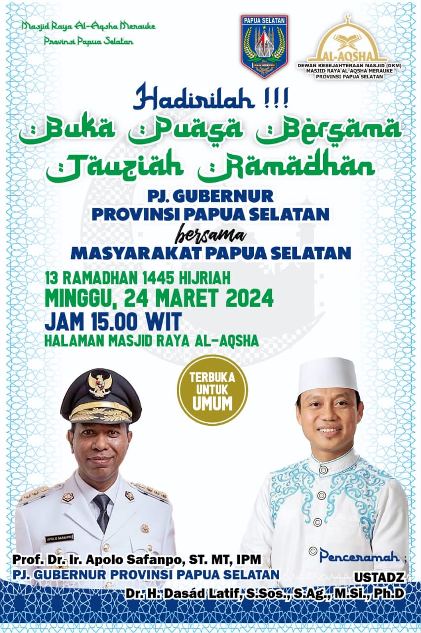 Para Muslimin dan Muslimat Provinsi Papua Selatan diundang untuk turut serta dalam acara ini yang menjadi kesempatan baik untuk merasakan kehangatan serta keberkahan dalam menyambut bulan suci Ramadhan. (Ron)
