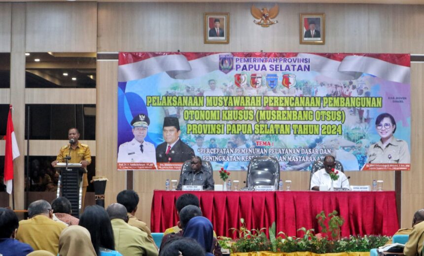 TIFFANEWS.CO.ID – Penjabat (Pj) Gubernur Papua Selatan dengan resmi membuka pelaksanaan Musyawarah Perencanaan Pembangunan Otonomi Khusus (Musrenbang Otsus) Provinsi Papua Selatan Tahun 2024 di Merauke, Senin (25/3/2024).