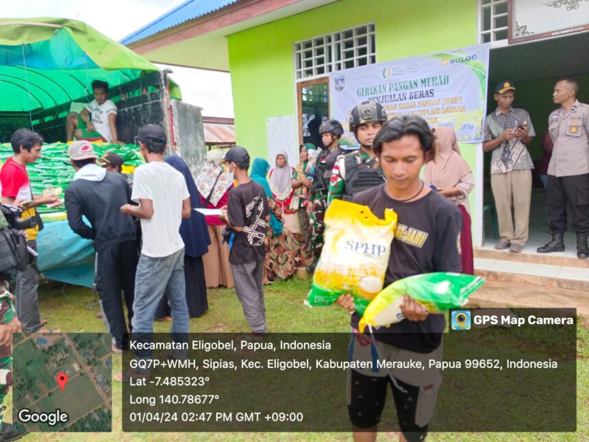 TIFFANEWS.CO.ID – Menindaklanjuti janji dari Penjabat (Pj) Gubernur Papua Selatan, Prof. Dr. Apolo Safanpo, ST., MT., IPM., Pemerintah Provinsi Papua Selatan melalui Dinas Pertanian, Pangan, Kelautan, dan Perikanan melakukan Gerakan Pangan Murah (GPM) yang bertujuan untuk menanggulangi tingginya harga beras di Distrik Eligobel, Merauke, Senin (1/3/2024).