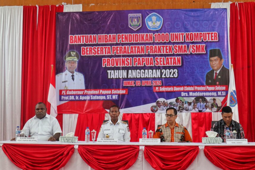 Dalam upaya mendukung peningkatan kualitas pendidikan di Kabupaten Asmat dan Provinsi Papua Selatan, bantuan tersebut diserahkan secara simbolis oleh Pj Gubernur Papua Selatan, Apolo Safanpo.
