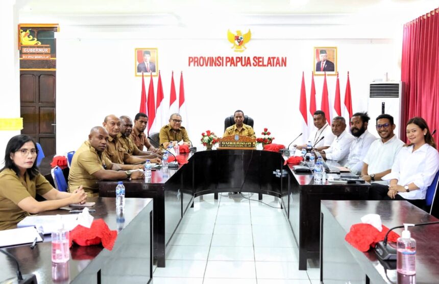 Pertemuan Pj. Gubernur Papua Selatan, Prof. Dr. Ir. Apolo Safanpo, ST.,MT.,IPM., bersama Dinas Pekerjaan Umum dan Perumahan Rakyat (PUPR) Provinsi Papua Selatan dan Balai Penyediaan Perumahan Papua I. (Foto : Humas Protokol Pemprov Papua Selatan)
