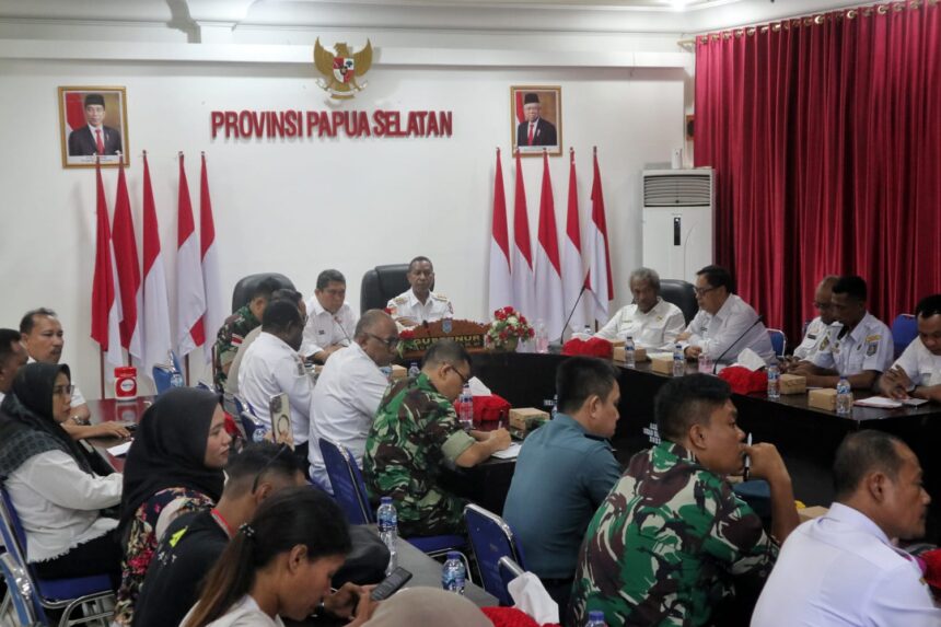 Dalam rapat yang dihadiri oleh Sekda Provinsi Papua Selatan, Maddaremeng, Sekda Kabupaten Merauke, Jeremias Ndiken dan Forkopimda Papua Selatan.