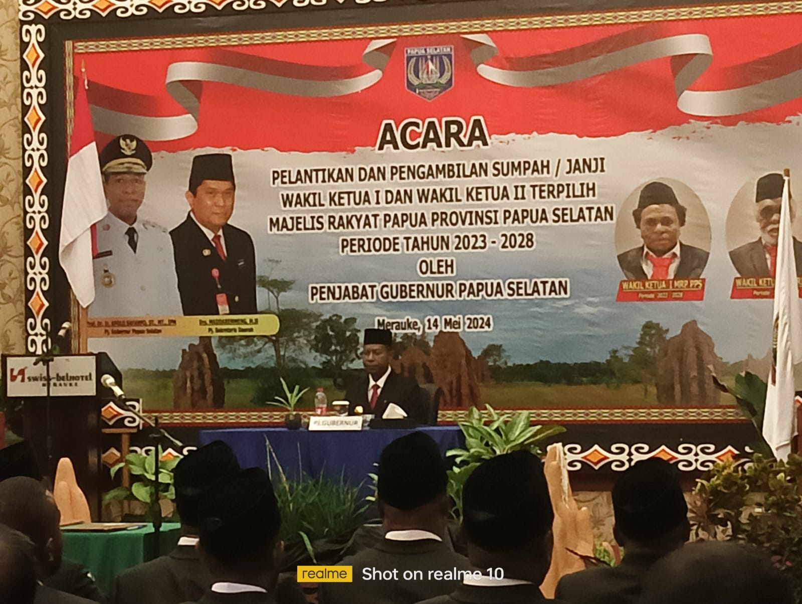 Dalam sambutannya, Pj. Gubernur, Apolo Safanpo mengucapkan selamat kepada para pimpinan MRP yang baru dilantik dan menekankan pentingnya kerjasama antara MRP dan Pemerintah Provinsi Papua Selatan.
