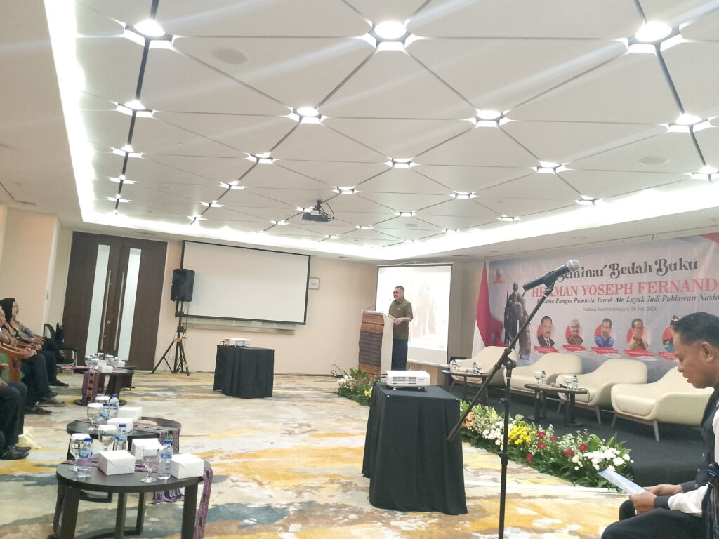 TIFFANEWS.CO.ID,- Mantan Wakil Kepala Staf Angkatan Darat dan mantan Pangdam IX Udayana Letjen TNI (Purn) Kiki Syahnakri tampil sebagai pembicara kunci Seminar dan Bedah Buku biografi berjudul, “Herman Yoseph Fernandez, Kusuma Bangsa Pembela Tanah Air, Layak Jadi Pahlawan Nasional.” yang berlangsung di Gedung Yustinus, Universitas Atma Jaya Jakarta, Sabtu, (8/6).