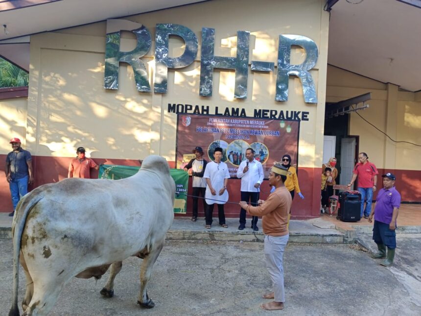 TIFFANEWS.CO.ID – Pj. Gubernur Papua Selatan, Prof. Dr. Ir. Apolo Safanpo, ST., MT., secara langsung menyerahkan sapi kurban bantuan dari Presiden Republik Indonesia Joko Widodo dan Pemprov Papua Selatan kepada masyarakat di Rumah Potong Hewan (RPH) Mopah Lama Merauke, Minggu (16/6/2024).