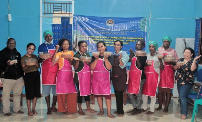 Caecelia Henny Setya Wati menyampaikan, “Kami hadir di sini untuk memberikan pengabdian kepada masyarakat dalam meningkatkan perekonomian melalui pengolahan bahan baku lokal menjadi produk bernilai tambah, khususnya dalam bentuk kue, karena bahan baku ini melimpah di masyarakat.”