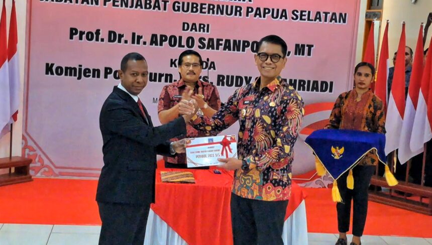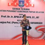 TIFFANEWS.CO.ID – Serah terima jabatan (Sertijab) Penjabat (Pj) Gubernur Papua Selatan, Prof. Dr. Ir. Apolo Safanpo, ST., MT menghimbau masyarakat agar mendukung kerja Komjen Pol. (Purn.) Drs. Rudy Sufahriadi dalam beberapa waktu kedepan. Hal ini diungkapkannya pada Jumat (9/8/2024) di Gedung Negara, Kantor Gubernur Provinsi Papua Selatan.