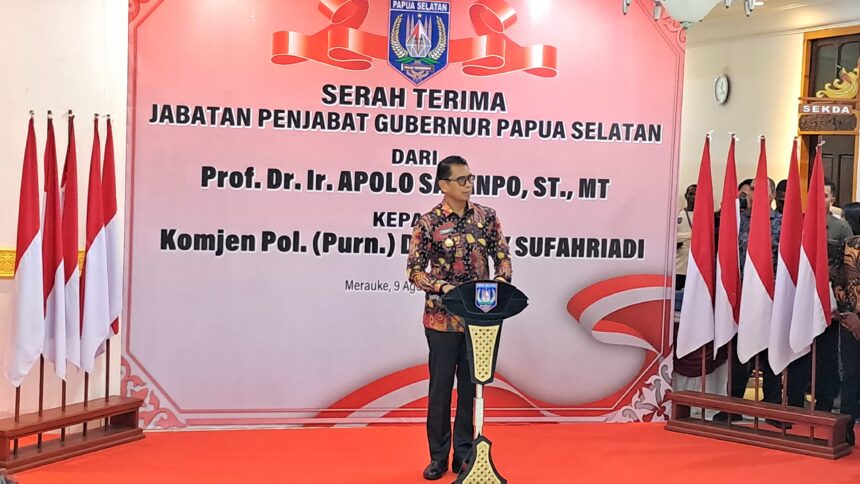 TIFFANEWS.CO.ID – Penjabat (Pj) Gubernur Papua Selatan, Rudy Sufahriadi menanyakan ketidakhadiran Majelis Rakyat Papua Selatan (MRPS) pada acara Serah- Terima Jabatan (Sertijab) dari Penjabat Gubernur PPS yang lama Prof.Dr.Ir.Apolo Safanpo, ST., MT kepada Pj. Gubernur yang baru Komjen Pol. (Purn) Drs.Rudy Sufahriadi. Hal itu disampaikan Pj Gubernur Rudy saat memberikan sambutan di acara Sertijab tersebut pada Jumat (9/8/2024) di Kantor Gubernur Provinsi Papua Selatan.