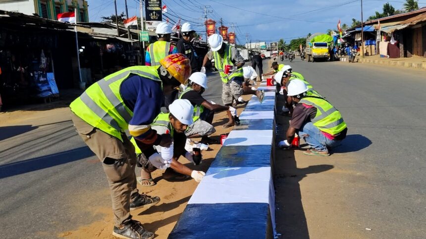 TIFFANEWS.CO.ID – Ratusan Orang Asli Papua (OAP) dikerahkan dalam proyek pengecatan bahu jalan dan trotoar di Merauke, Ibukota Provinsi Papua Selatan, dalam rangka merayakan Hari Kemerdekaan Republik Indonesia ke-79 tahun.