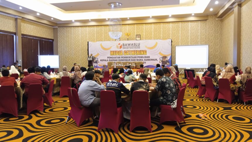 TIFFANEWS.CO.ID,- Badan Pengawas Pemilu (Bawaslu) Provinsi Papua Selatan menggelar Media Gathering bersama Komunitas Wartawan Daerah (KWD) dan Organisasi Kepemudaan serta Mahasiswa-Mahasiswi di Kabupaten Merauke, Senin (14/10/2024).
